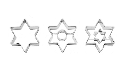 Malá sada velikostně odlišených hvězdných vykrajovátek na cukroví. Využijete je třeba při tvorbě perníčků, lineckého nebo sušenek.